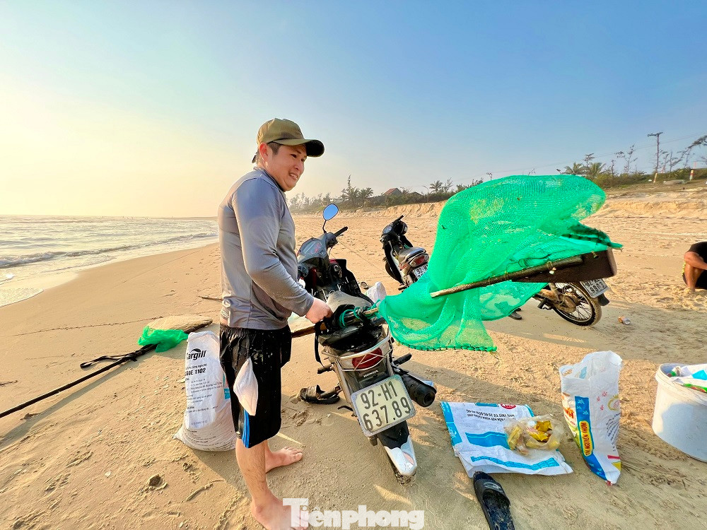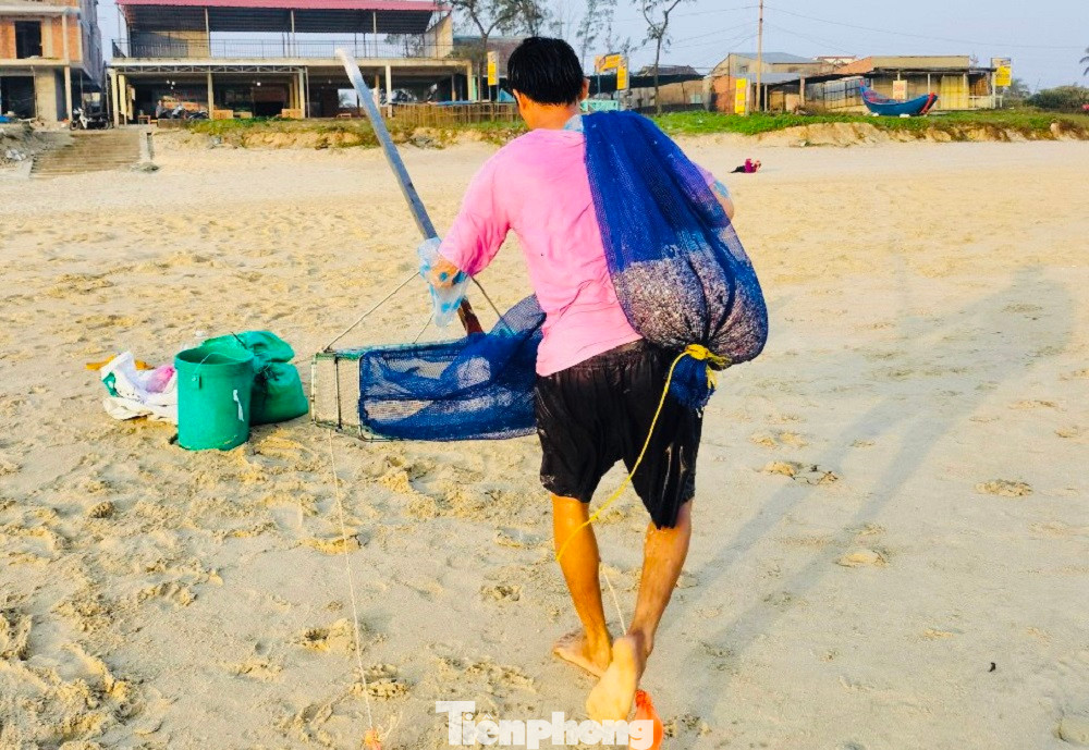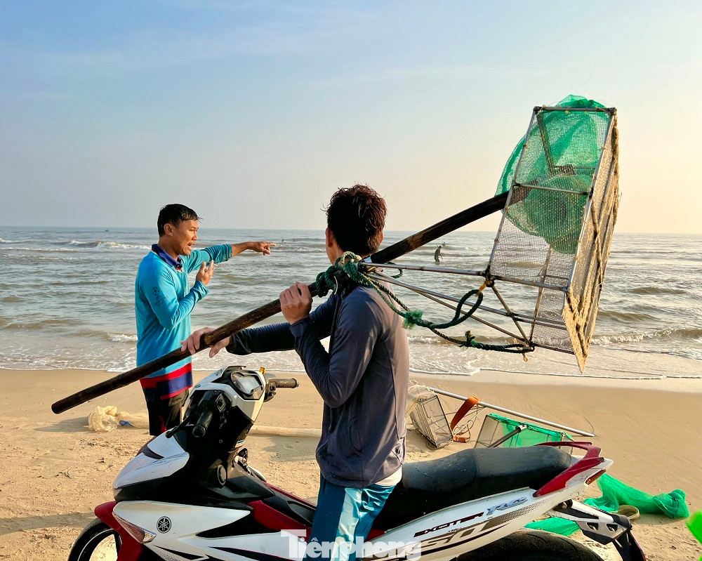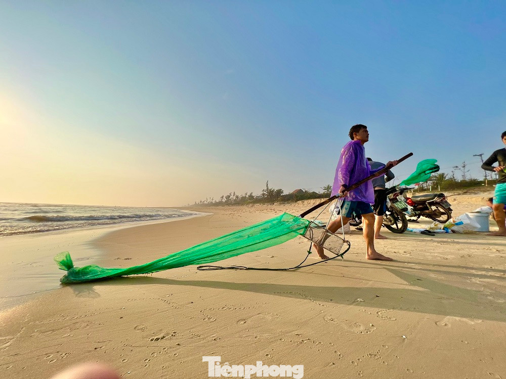 Gà vừa gáy, ông Lê Duy Bửu (65 tuổi, trú xã Tam Thanh) đã cầm chiếc cào ốc ruốc dài khoảng 2m làm bằng tre tiến về phía biển Tam Thanh để cào ốc ruốc. Cũng như ông Bửu, nơi đây hàng chục người dân cũng có mặt ở biển này từ rất sớm.