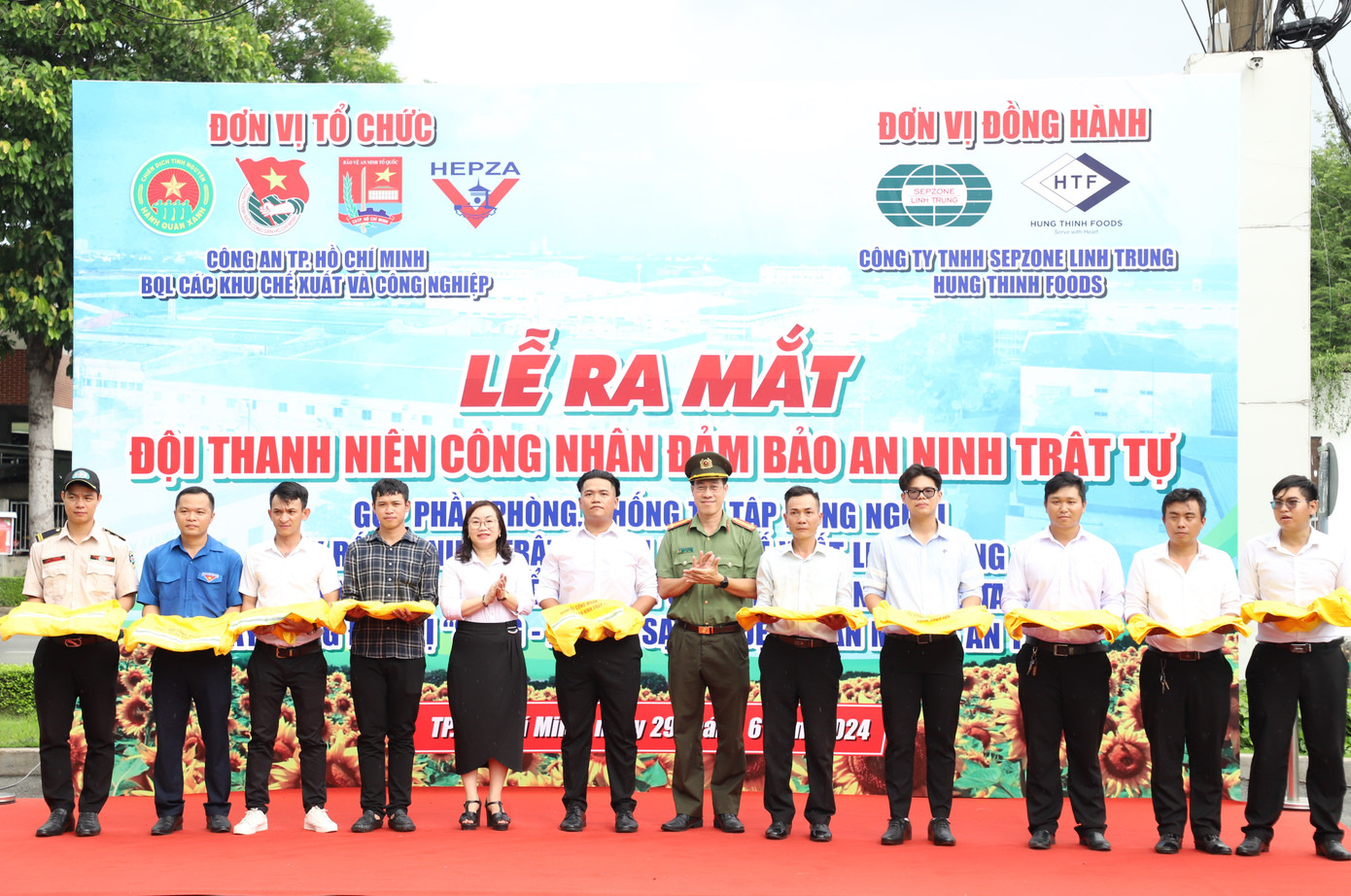 Sáng 29/6, Đoàn Thanh niên Công an TPHCM (CATP) phối hợp Đoàn Thanh niên Ban Quản lý các Khu chế xuất, công nghiệp TPHCM (Hepza) tổ chức lễ ra mắt mô hình “Đội Thanh niên công nhân đảm bảo an ninh trật tự, phòng chống tụ tập đông người gây rối an ninh trật tự” (gọi tắt là Đội Thanh niên công nhân đảm bảo ANTT) tại Khu chế xuất Linh Trung 1, TP. Thủ Đức.