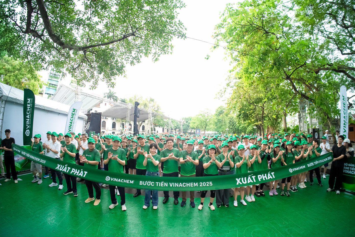 Đông đảo cán bộ, người lao động Vinachem và người dân tham gia chương trình đi bộ “Bước tiến Vinachem 2025 – Tiên phong xanh hóa ngành Hóa chất” quanh hồ Hoàn Kiếm. Hoạt động đi bộ đồng hành diễn ra trước lễ phát động đã thu hút “hàng nghìn” người ở mọi lứa tuổi tham gia. Tất cả cùng khoác trên mình áo màu xanh lá đặc trưng, nối dài thành dòng người quanh bờ hồ, tạo nên hình ảnh tập thể khoẻ khoắn và tràn đầy nhiệt huyết. Tiếng trống hội rộn rã cùng những khẩu hiệu “Vì Việt Nam xanh” vang lên, cổ vũ tinh thần cho các đội nhóm tham gia. Chị Trần Thu Hương (quận Hoàn Kiếm), một người dân tham gia sự kiện, chia sẻ đầy phấn khởi: “Đi bộ quanh hồ vừa giúp rèn luyện sức khỏe, vừa là một hành động thiết thực góp phần lan tỏa thông điệp bảo vệ môi trường, tôi thấy hoạt động này thực sự rất ý nghĩa”. Có thể nói, mỗi bước chân của chương trình “Bước tiến Vinachem 2025” đã truyền đi thông điệp rõ ràng về kết nối cộng đồng và ý thức bảo vệ môi trường, tiêu dùng xanh, phát triển có trách nhiệm.