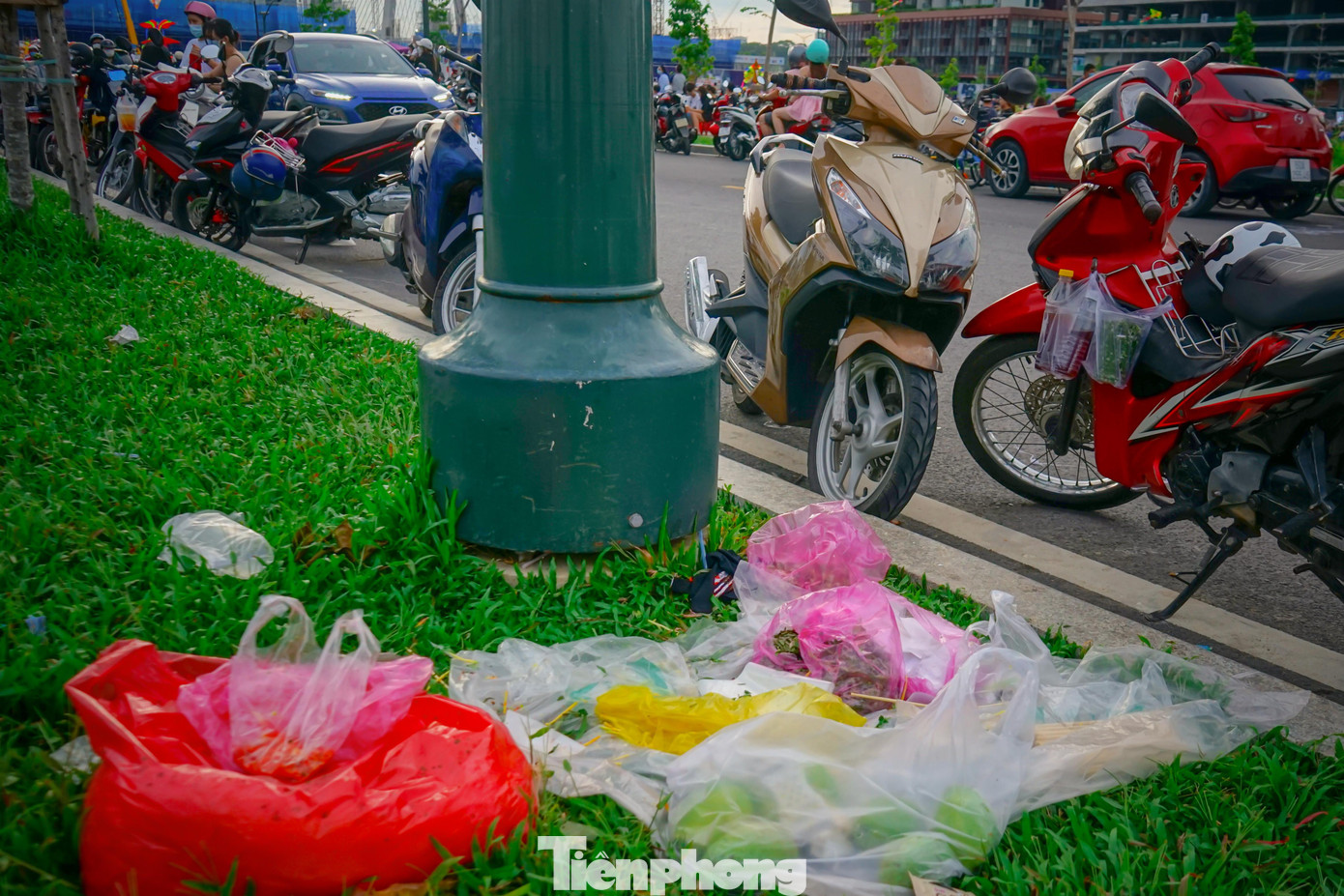| Có mặt tại khu vui chơi thả diều ngã tư đường Trần Bạch Đằng giao với đường R12 trong ngày 8/5, phóng viên Tiền Phong đã ghi nhận bên lề các tuyến đường rác chất thành đống lớn kéo dài cả chục mét. |