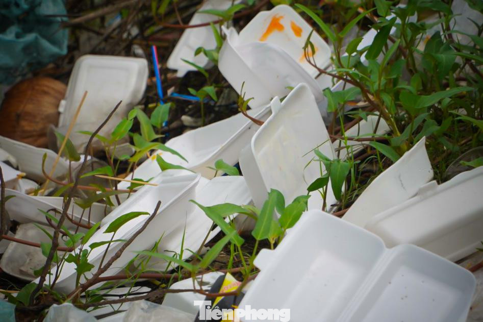 | Hầu hết các loại rác thải tại đây đều những loại khó phân hủy như hộp xốp, túi nilon, ly nhựa,... do người dân xả thẳng xuống đường sau khi ăn uống xong. |