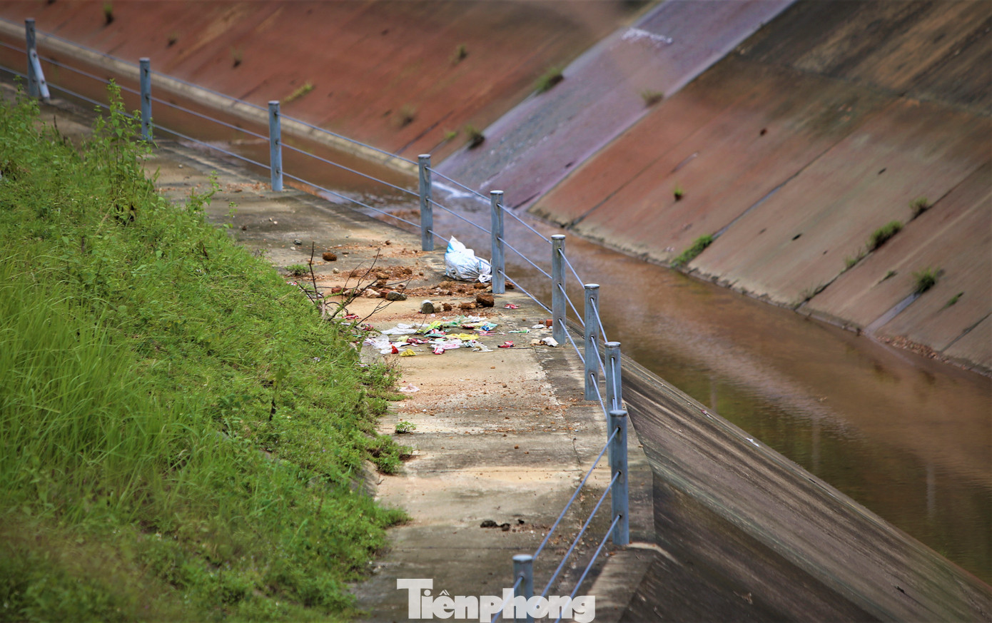 | Khu vực ven kênh dẫn, rác chắn gần hết cả lối đi. |