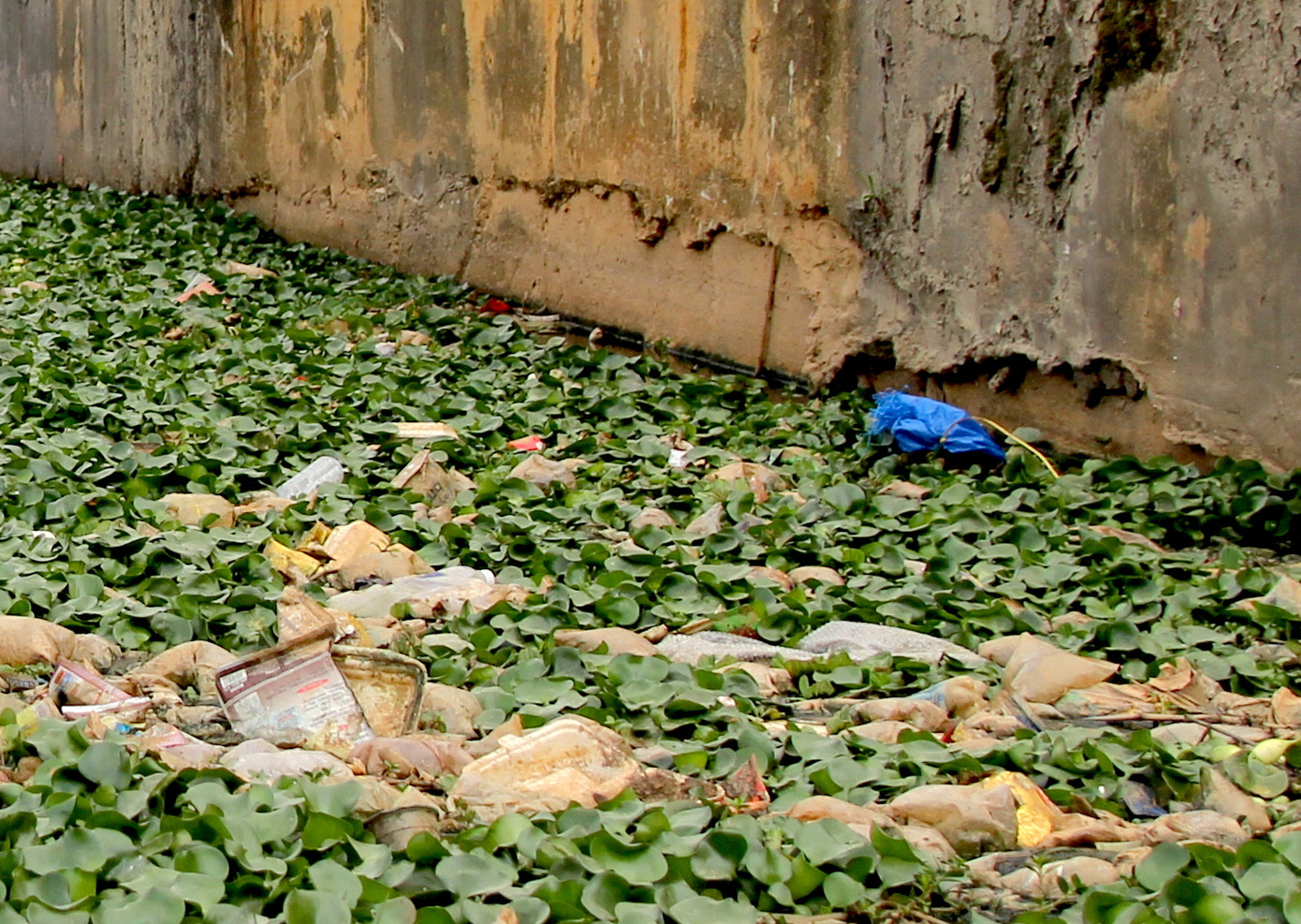 | | Rác thải lẫn với bèo bốc mùi hôi thối | |
