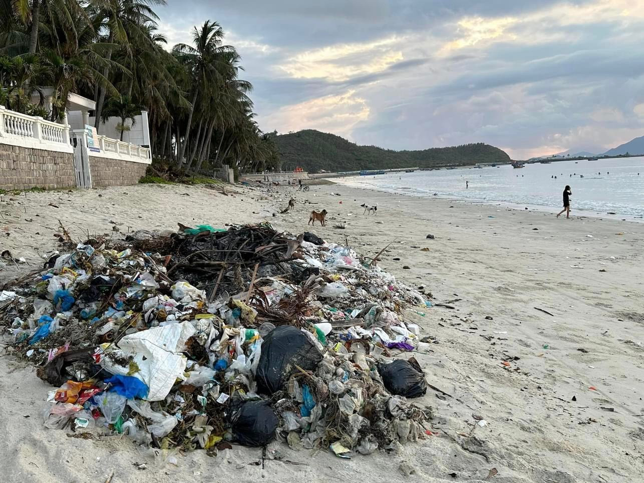 | Rác thải đầy trên bãi biển Dốc Lết nhưng không thấy ai dọn dẹp. |