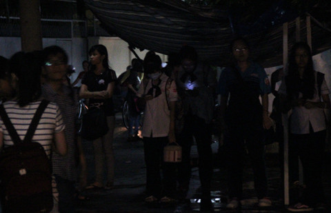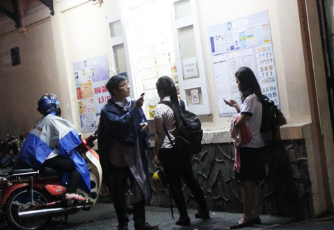 Nhiều phụ huynh kiên trì đứng trong màn đêm chờ con