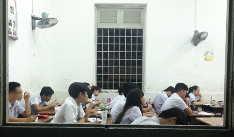 Không khí học thêm náo nhiệt không khác buổi học chính khóa tại THPT Gia Định (Bình Thạnh, TPHCM).