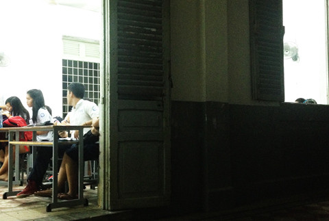 Trong khi nhiều học sinh kết thúc ca một vào 7 giờ tối, các học sinhhọc ca hai bắt đầu vào lớp tạo không khí náo nhiệt trước cổng trường