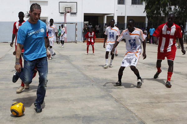 TPO - Với vai trò là đại sứ thiện chí của Quỹ Nhi đồng Liên Hợp Quốc (UNICEF), Serio Ramos – hậu vệ của nhà vô địch World Cup 2010 Tây Ban Nha – bắt đầu chuyến thăm kéo dài bốn ngày tới thủ đô Dakar của Senegal, từ sáng 18 - 7.