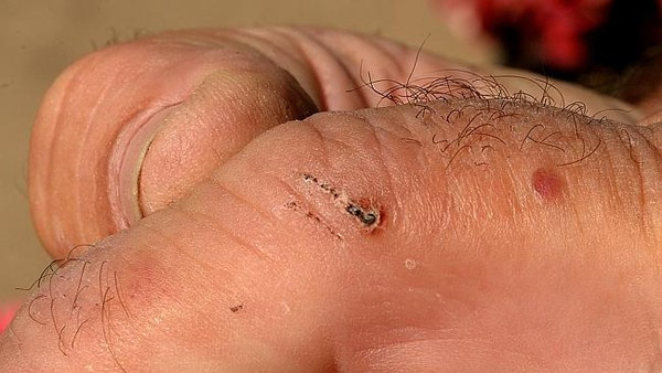 Ông kể lại: "Tôi cho tay vào chiếc bình để nhặt xác con rắn, khi rút tay ra tôi thấy hai vết cắn trên tay mình. Dù đã chết nhưng con rắn vẫn cắn tôi".