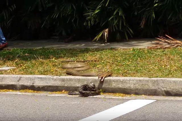 Mặc dù đã cố gắng hết sức để siết chặt con rắn hổ mang chúa, song cuối cùng chú trăn cũng phải bỏ mạng vì bị nọc độc ngấm vào người quá nhiều.