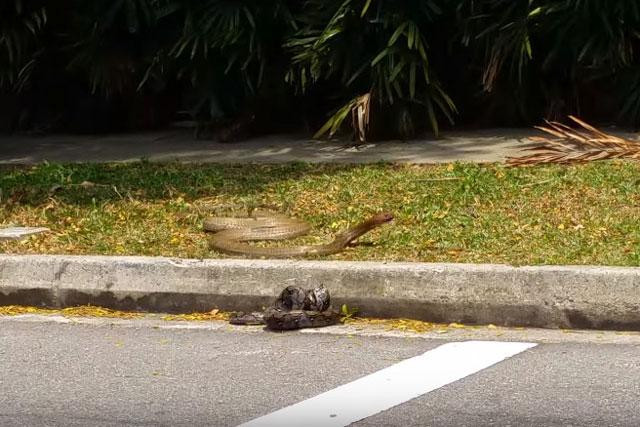 | Video: Rắn hổ mang chúa giết chết trăn gấm. Nguồn: Roaring Earth. |