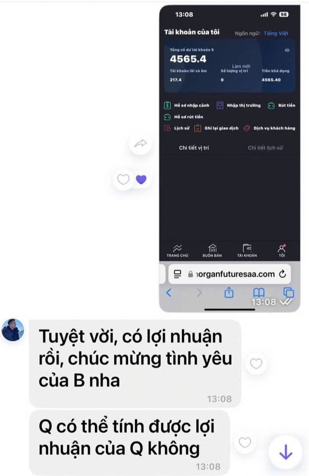 Đến ngày 14/3, bà Q. đầu tư 100 triệu đồng và nhanh chóng nhận được 2,8 triệu đồng tiền lãi. Sau đó, bà Q. tiếp tục đầu tư hơn 242 triệu đồng. Khi chuẩn bị vay thêm tiền để nâng mức lãi suất, hệ thống bất ngờ yêu cầu bà Q. nộp thêm 121 triệu đồng thuế thu nhập cá nhân theo quy định của "Bộ Tài chính Singapore".