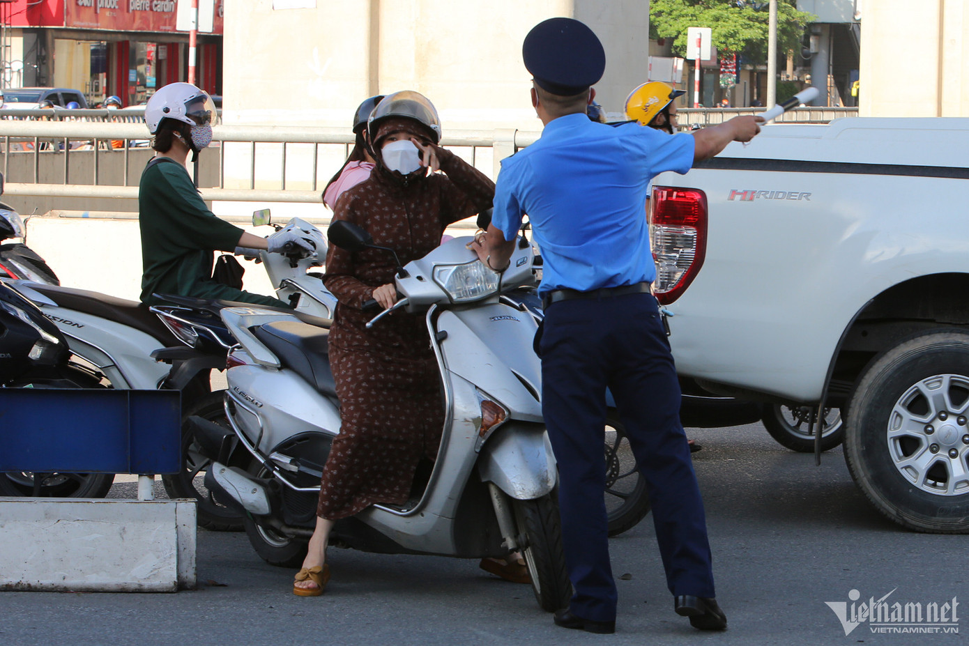 | Lực lượng Thanh tra giao thông ngăn cản nhưng nhiều người vẫn đi ngược chiều. |