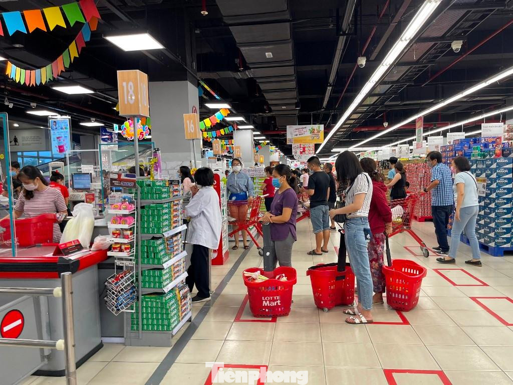 Lượng khách đến mua sắm không đông. "Có thể do lễ dài ngày nên nhiều gia đình đi chơi xa nên ít vào siêu thị mua sắm. Đối với khách hàng, chúng tôi đều đo thân nhiệt, rửa tay sát khuẩn và yêu cầu đeo khẩu trang để phòng dịch bệnh COVID-19" - một nhân viên của siêu thị Lotte cho hay.