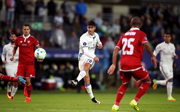 Việc Zidane đặt niềm tin vào cầu thủ trẻ cũng có phần đúng đắn. Trong khoảng thời gian đầu trận, chính đội hình mang tính chắp vá của Real chơi tốt hơn so với Sevilla. Phút 21, cầu thủ 20 tuổi Marco Asensio thậm chí tung cú sút xa đẹp mắt mở tỷ số.