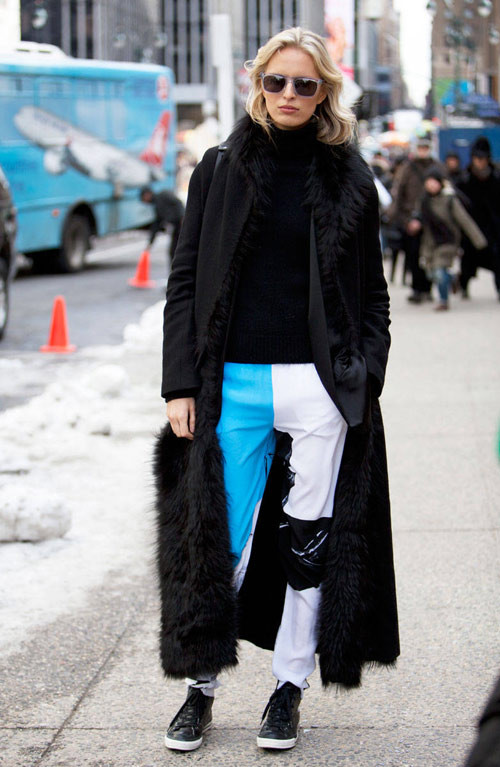 Tuần lễ thời trang New York diễn ra đúng dịp mùa Đông khắc nghiệt lê lết ngón chân buốt lạnh, chạm tay vào không gian khiến từng hơi thở cũng có thể hóa băng hóa tuyết. Tuy nhiên, tình cảm tín đồ thời trang ấm nóng như lửa, bất chấp giá rét cùng nhau quy tụ tại thành phố phồn hoa hàng đầu nước Mỹ. Mà họ lo gì? Trên người còn có tấm áo choàng lông dày dặn nhường kia...