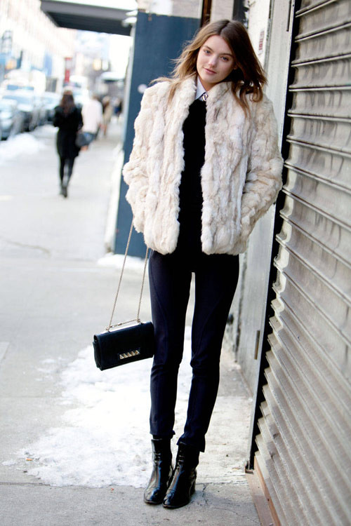 Những tấm áo lông màu đen được yêu dùng nhiều nhất, nhưng không vì thế mà tạo nên diện mạo "đồng phục" cho các quý cô. Họ - mỗi người một cách ứng biến áo lông ấn tượng, tạo cho mình phong cách và vẻ ngoài không thể nhầm lẫn với ai.