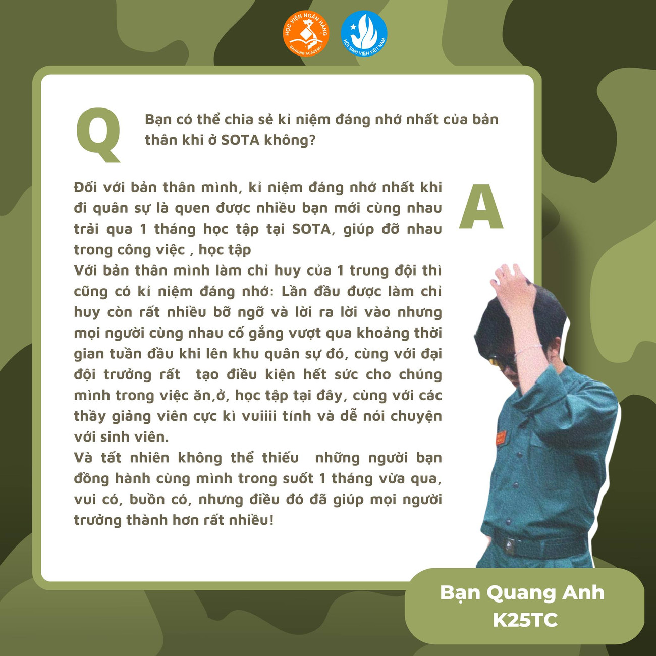 SVO - Nghiêm khắc, đầy thử thách và vất vả, có lẽ là liên tưởng đầu tiên của những tân sinh viên khi nghĩ đến kỳ học quân sự dành cho những sinh viên Học viện Ngân hàng. Cuộc sống dành cho sinh viên đại học chứa đựng rất nhiều những điều mới mẻ, kỳ học quân sự cũng là một trong những điều mới mẻ đó.