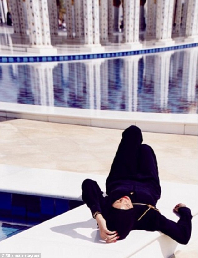 Nhìn vào trang phục của Rihanna có thể thấy nữ ca sĩ Diamonds đã khá cẩn trọng khi chụp hình tại một nơi linh thiêng như thế này, cô nàng diện trang phục đen kín mít từ đầu đến chân khác hẳn với phong cách gợi cảm thường thấy.