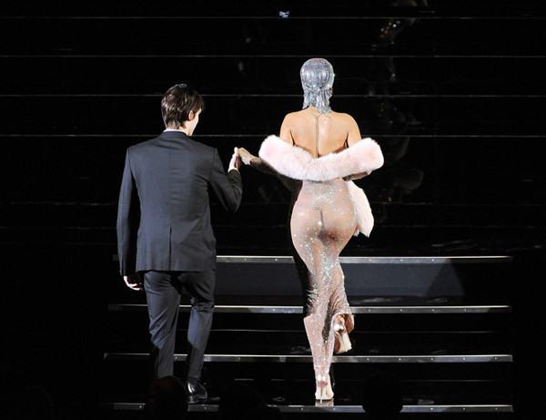 Nữ ca sĩ gây sốc khi diện bộ đầm màu nude xuyên thấu của bạn thân là NTK Adam Selman.