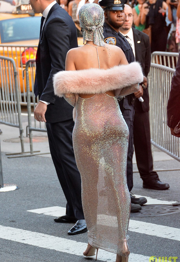 Nhiều người đã 'nhức mắt' với Rihanna với bộ váy mặc cũng như không. Người đẹp hoàn toàn không mặc áo lót mà chỉ diện chiếc quần màu nude.
