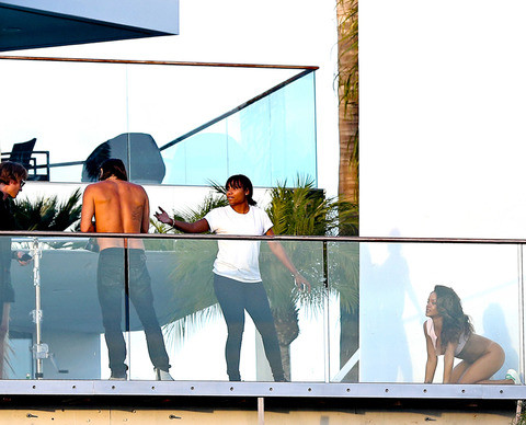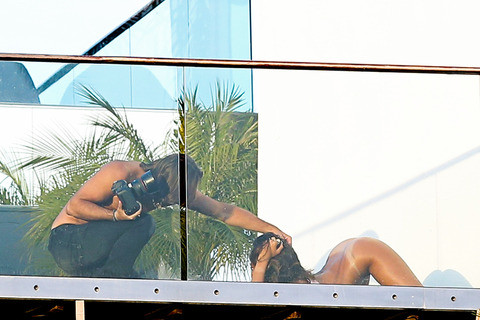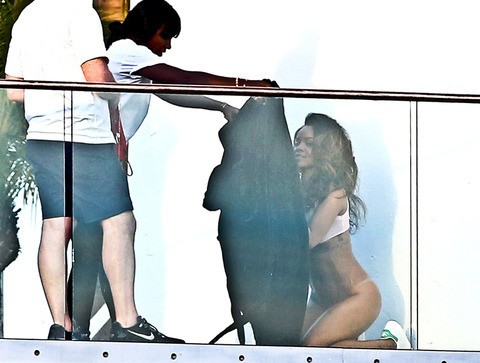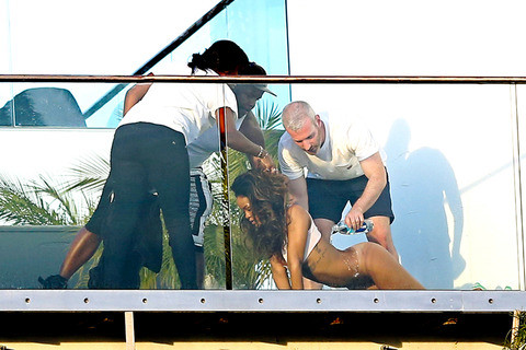 Một người phụ tá còn đổ nước lên người Rihanna để cô nàng trở nên nóng bỏng hơn khi chụp ảnh