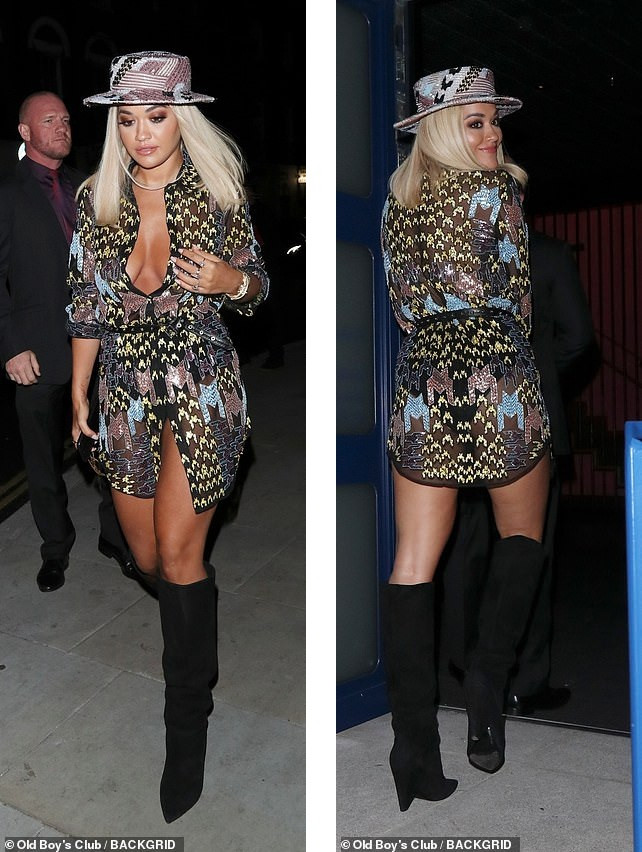 Rita Ora mặc váy mỏng tang hớ hênh rạng rỡ đi dự tiệc