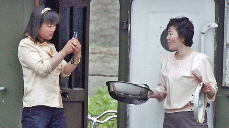 Một phụ nữ Triều Tiên dùng đoại thoại di động chụp ảnh