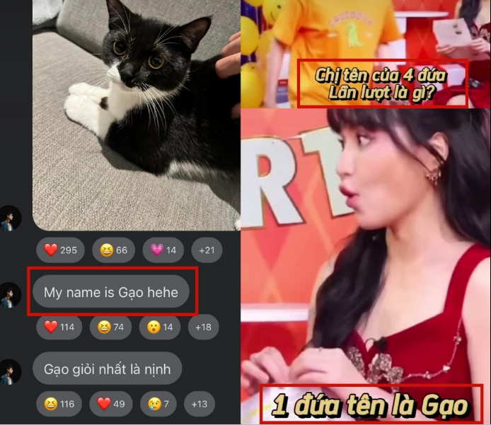 Thêm vào đó, trên TikTok, netizen cũng soi ra được nhiều bằng chứng khá hay ho. Trong một buổi livestream, Bích Phương từng tiết lộ nhà cô nuôi 4 bé mèo, trong đó có một bé tên là Gạo. Trùng hợp thay, Gạo cũng là chú mèo từng được nam ca sĩ Bên Trên Tầng Lầu giới thiệu trong kênh chat với người hâm mộ.
