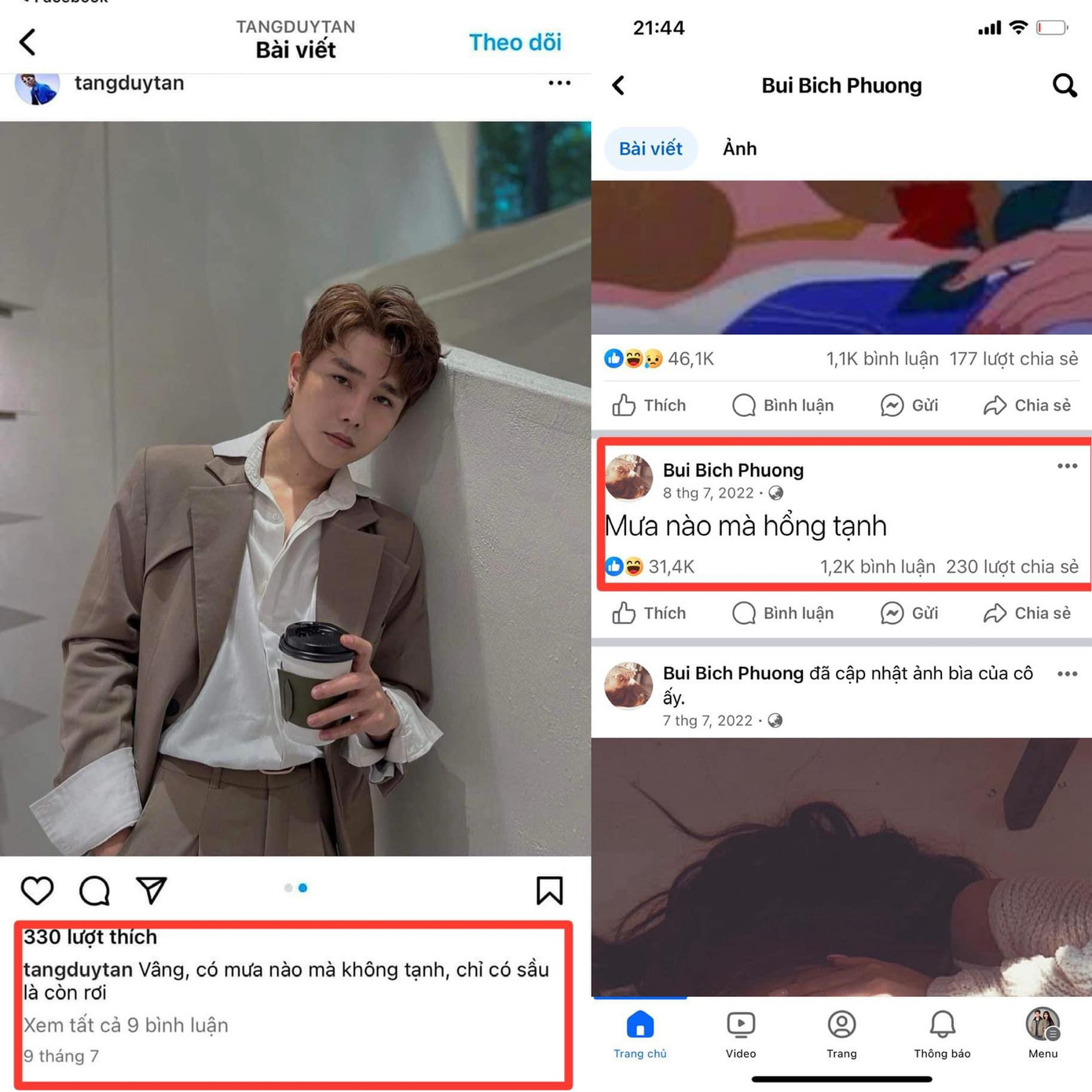 Hay cùng thời điểm giữa tháng 7/2022, khi giọng ca Bùa Yêu đăng ảnh kèm chú thích: “Mưa nào mà hổng tạnh" thì sau 1 ngày, Tăng Duy Tân đăng hình mới kèm trạng thái: “Vâng, có mưa nào mà không tạnh, chỉ có sầu là còn rơi". Không biết ngẫu nhiên hay trùng hợp, chia sẻ của nam ca sĩ giống như một lời đáp lại tâm tư của giọng ca Bao Giờ Lấy Chồng.
