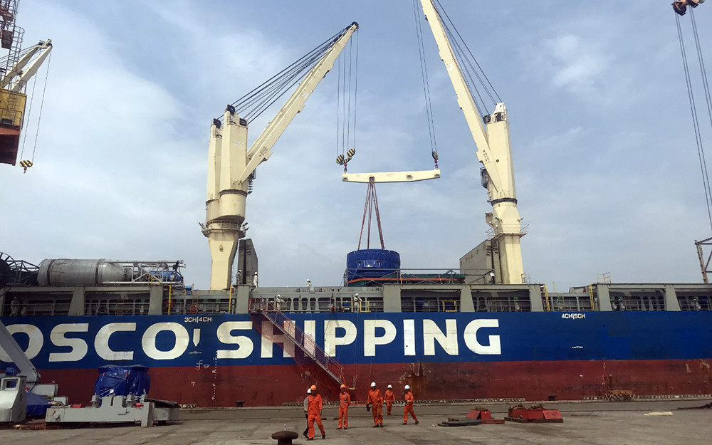 Các bộ phận máy đào hầm metro tuyến Nhổn - ga Hà Nội tại cảng Hoàng Diệu, TP Hải Phòng.