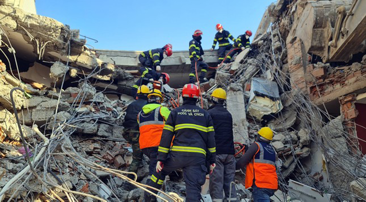 | Các đội cứu hộ, bao gồm cả lực lượng của nhiều nước khác, tiếp tục tìm kiếm trong đống đổ nát với hy vọng cứu thêm người may mắn sống sót. |