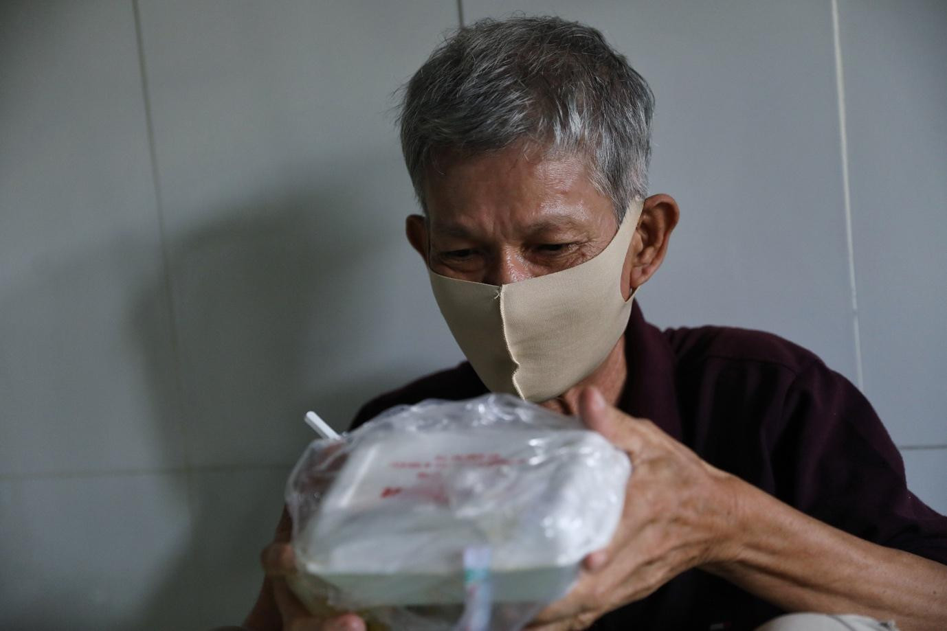 Ông Đinh Hiếu Nghĩa (58 tuổi, Bến Tre) xúc động khi nhận được suất ăn từ chương trình "Tiếp sức cộng đồng, vững vàng vượt khó" do Grab phối hợp cùng Quỹ Hy Vọng ( Báo VnExpress vận hành) thực hiện. "Hộp cơm tuy nhỏ nhưng với tôi nó rất lớn và quý giá lắm. Nhiều hôm cầm hộp cơm trên tay mà rơi nước mắt", ông Nghĩa nói