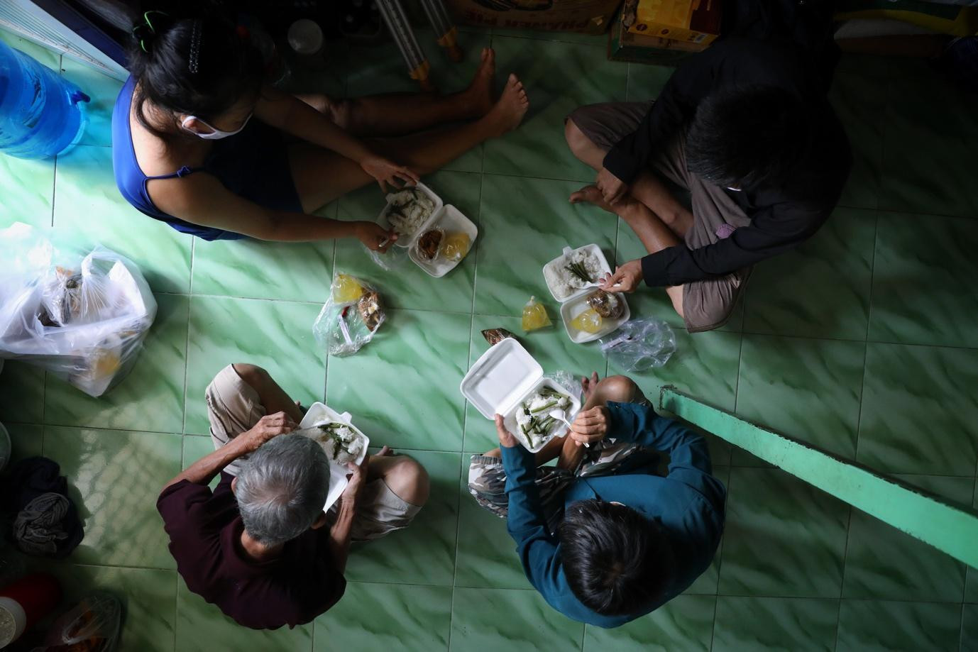 Nằm trong một con hẻm nhỏ trên đường Lê Đại Hành, phường 7, quận 11, TP HCM, căn nhà trọ hai tầng là nơi tá túc của 10 người bán vé số dạo. Họ chạy ăn từng bữa, nếu có tích lũy cũng chẳng đáng là bao. Dịch bệnh, các đại lý vé số dừng phát hành, cuộc sống của họ gần một tháng qua nhờ vào những suất ăn của các mạnh thường quân.