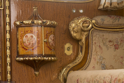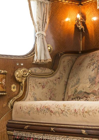 Các họa tiết và hoa văn trang trí theo phong cách Rococo vào cuối thời Baroque. Ngoài ra là tủ đồ uống giúp hành khách thư giãn bên cạnh tủ đựng đồ trang điểm, hệ thống đèn xa hoa, những chiếc ghế có thể cất gọn và một đồng hồ giả vàng kiểu Pháp cùng gỗ ốp bằng gỗ sơn tiêu. Những chi tiết xa xỉ khác gồm một loạt món đồ nhỏ được thiếp vàng thủ công.