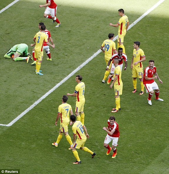 Thế nhưng bất ngờ đã xảy ra ở phút thứ 18. Trọng tài cho Romania hưởng một quả phạt đền khi cho rằng Lichtsteiner của Thụy Sĩ đã phạm lỗi với Chipciu trong cấm địa