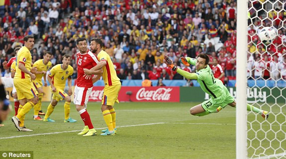 Trên chấm phạt đền, Bogdan Stancu dễ dàng bắn hạ thủ thành Thụy Sĩ, mang về bàn mở tỷ số cho Romania.