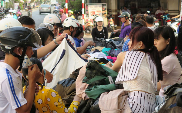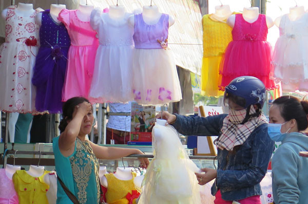 Còn tuyến đường Trần Hưng Đạo, phường 5 (TP Cà Mau) cũng rộn ràng những cửa hàng thời trang. Nhiều cửa hàng quần áo xả hàng, tổ chức các đợt khuyến mãi cho người mua.