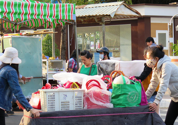 Chợ đêm trên đường Quang Trung nằm bên sông Cà Mau vừa hình thành phục vụ tết.