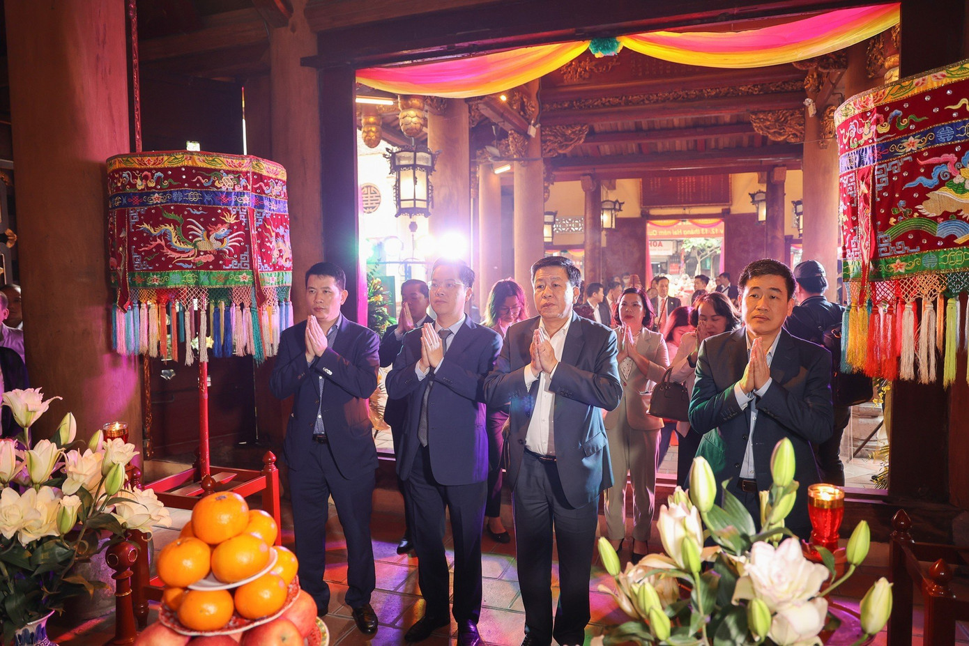 | Lãnh đạo thành phố, lãnh đạo quận Hoàn Kiếm dâng hương tại đền. |