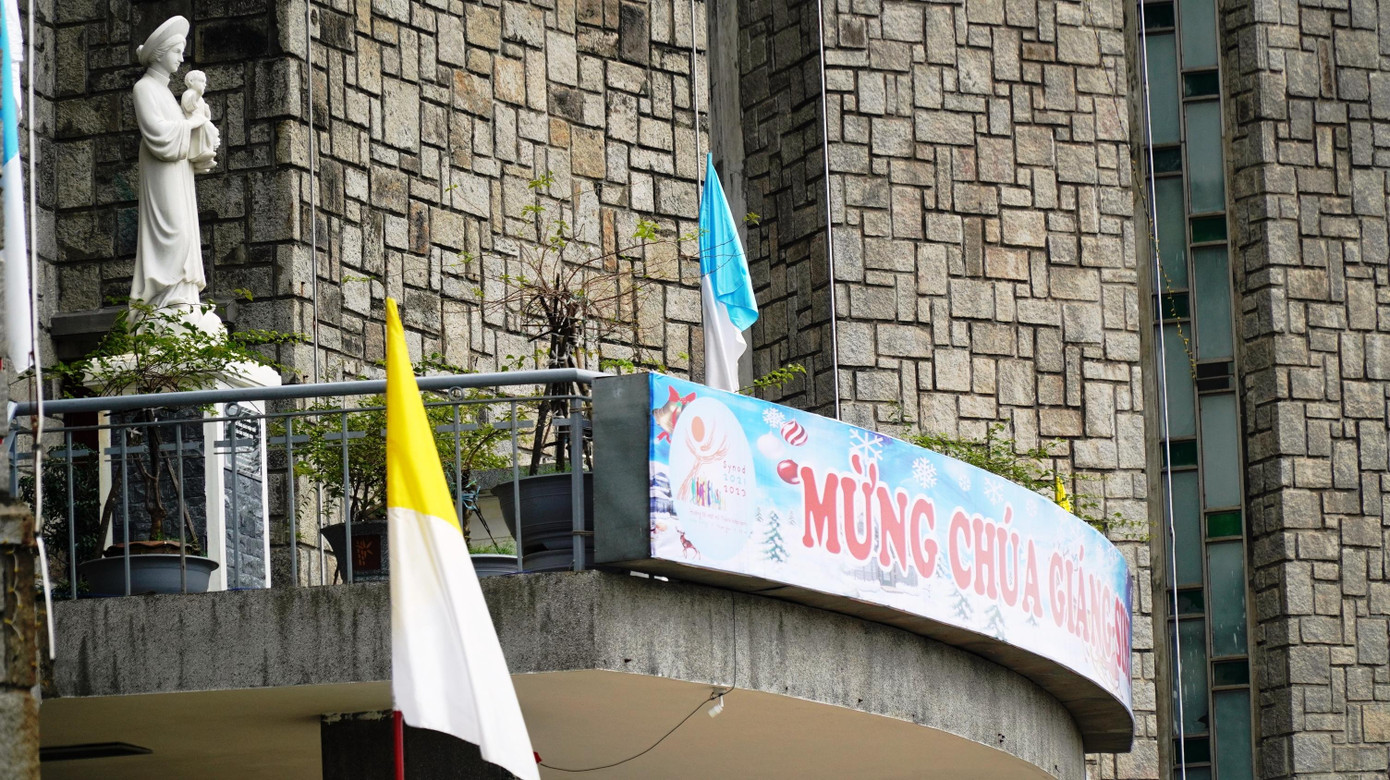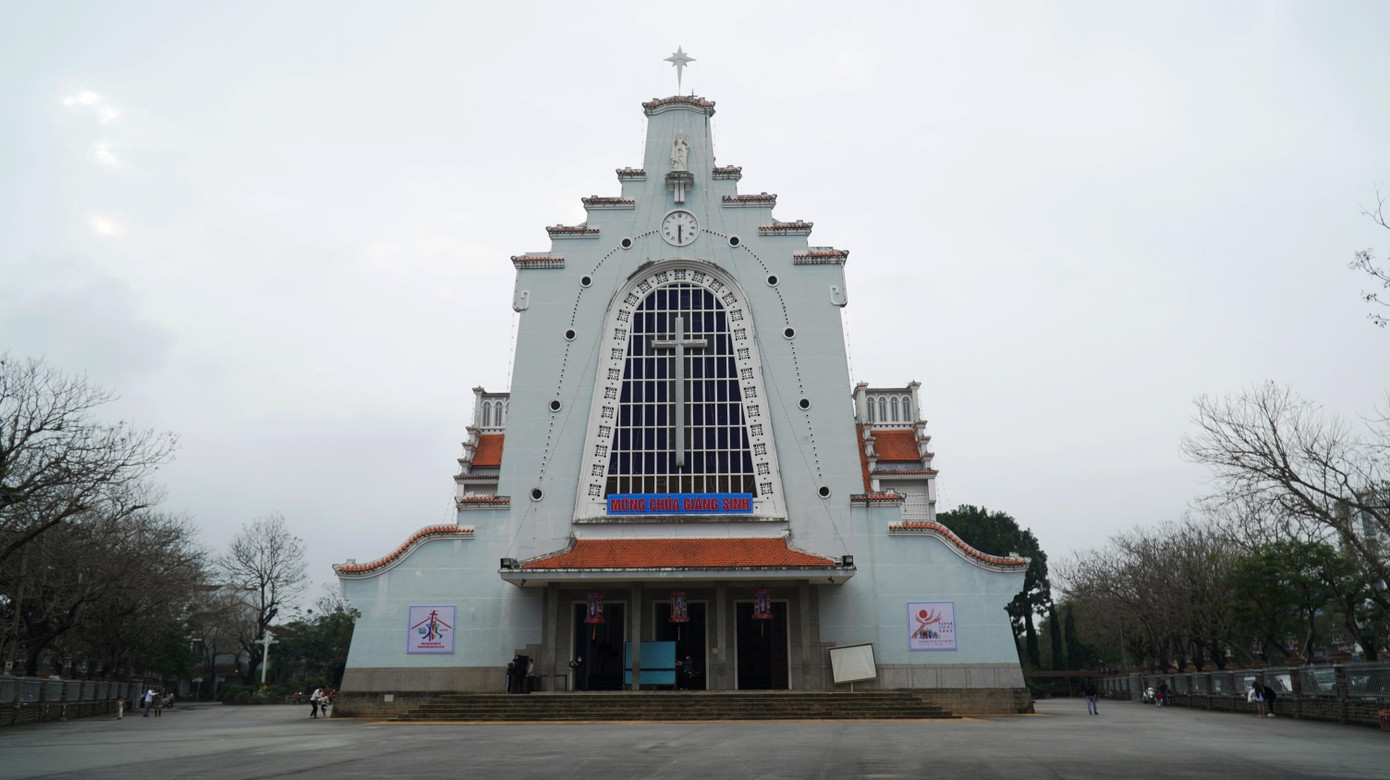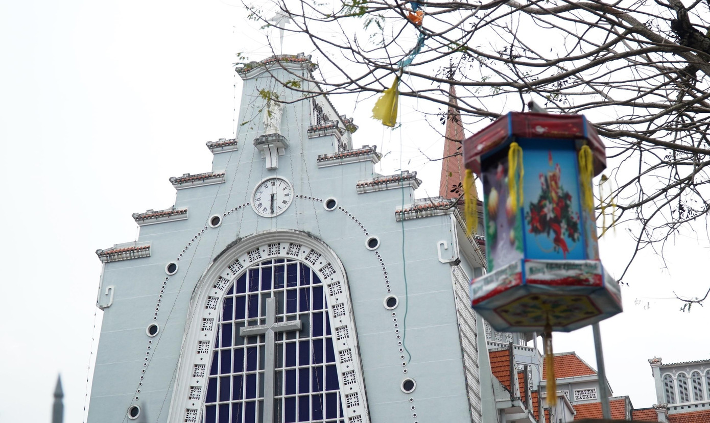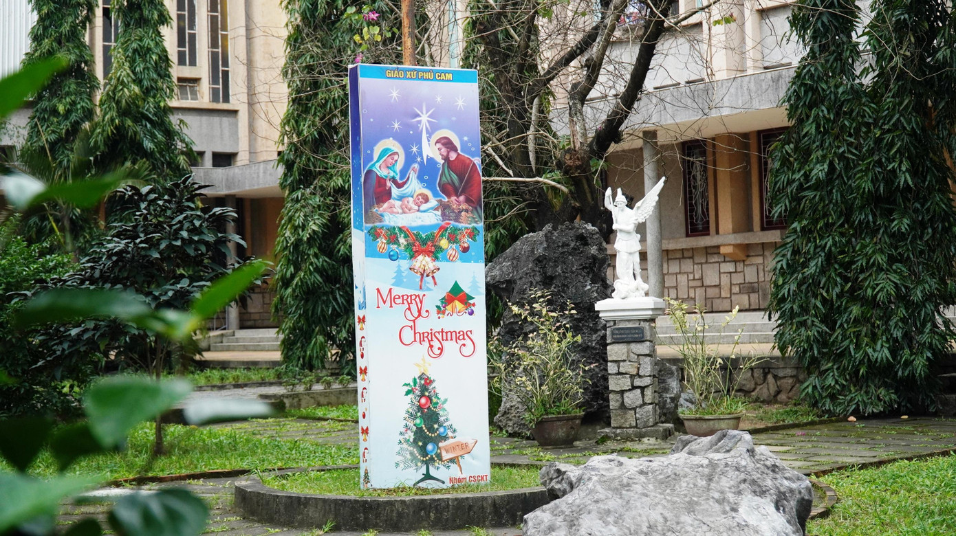 | Không khí Giáng sinh yên bình trong khuôn viên nhà thờ ở Huế. |