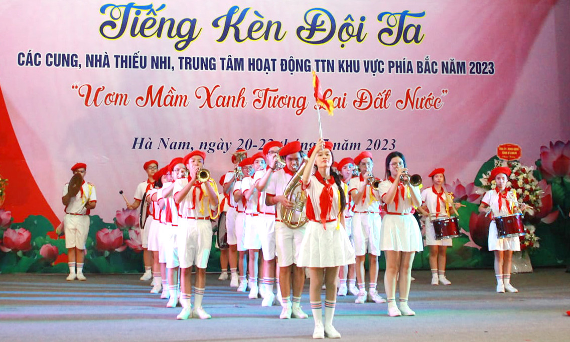 Trong hai ngày 20 - 21/7, tại Hà Nam, Liên hoan “Tiếng kèn Đội ta” các Cung, Nhà thiếu nhi, Trung tâm hoạt động thanh thiếu nhi khu vực phía Bắc năm 2023 với chủ đề "Ươm mầm xanh tương lai đất nước" thu hút hơn 1.000 anh chị phụ trách và thiếu nhi tham dự.