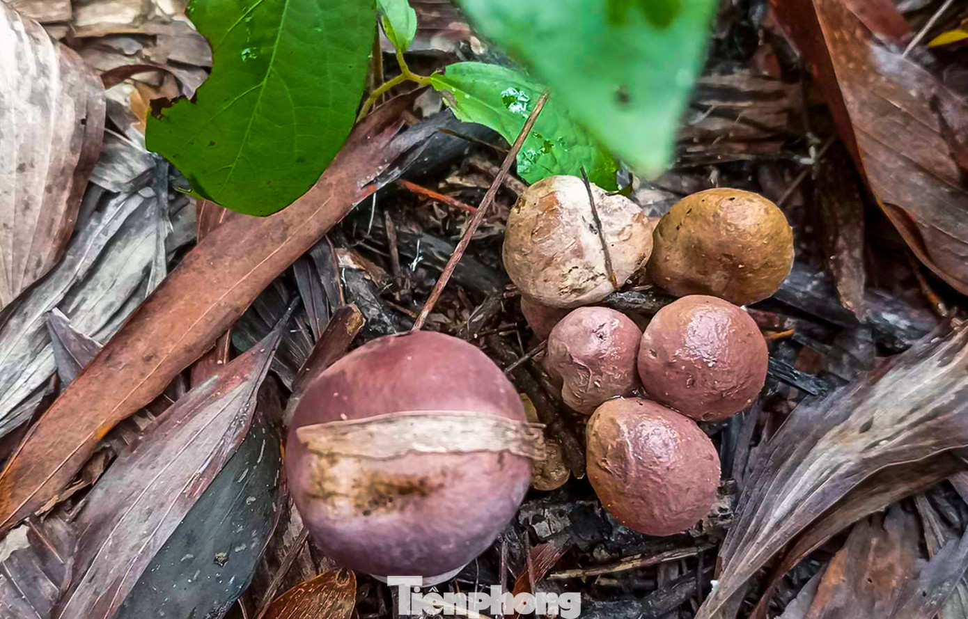 | Khi thời tiết đang hanh khô bỗng chuyển mưa vài ngày, làm ẩm một vùng đất trồng keo chính là thời điểm thuận lợi để nấm sinh sôi. Dưới những lớp lá mục, phôi nấm từ từ xuyên lên thành những cây nấm. Mới đầu nhỏ bằng ngón tay út, rồi lớn dần sau vài ngày, đầu nấm to tròn như quả trứng gà và có màu tím nhạt. Nấm mọc lên sau vài ngày nếu không được hái thì cả cây sẽ héo rũ xuống, mục nát hòa tan vào đất để chờ đến mùa năm sau lại tiếp tục một chu kỳ mới. (Ảnh: Trương Định) |