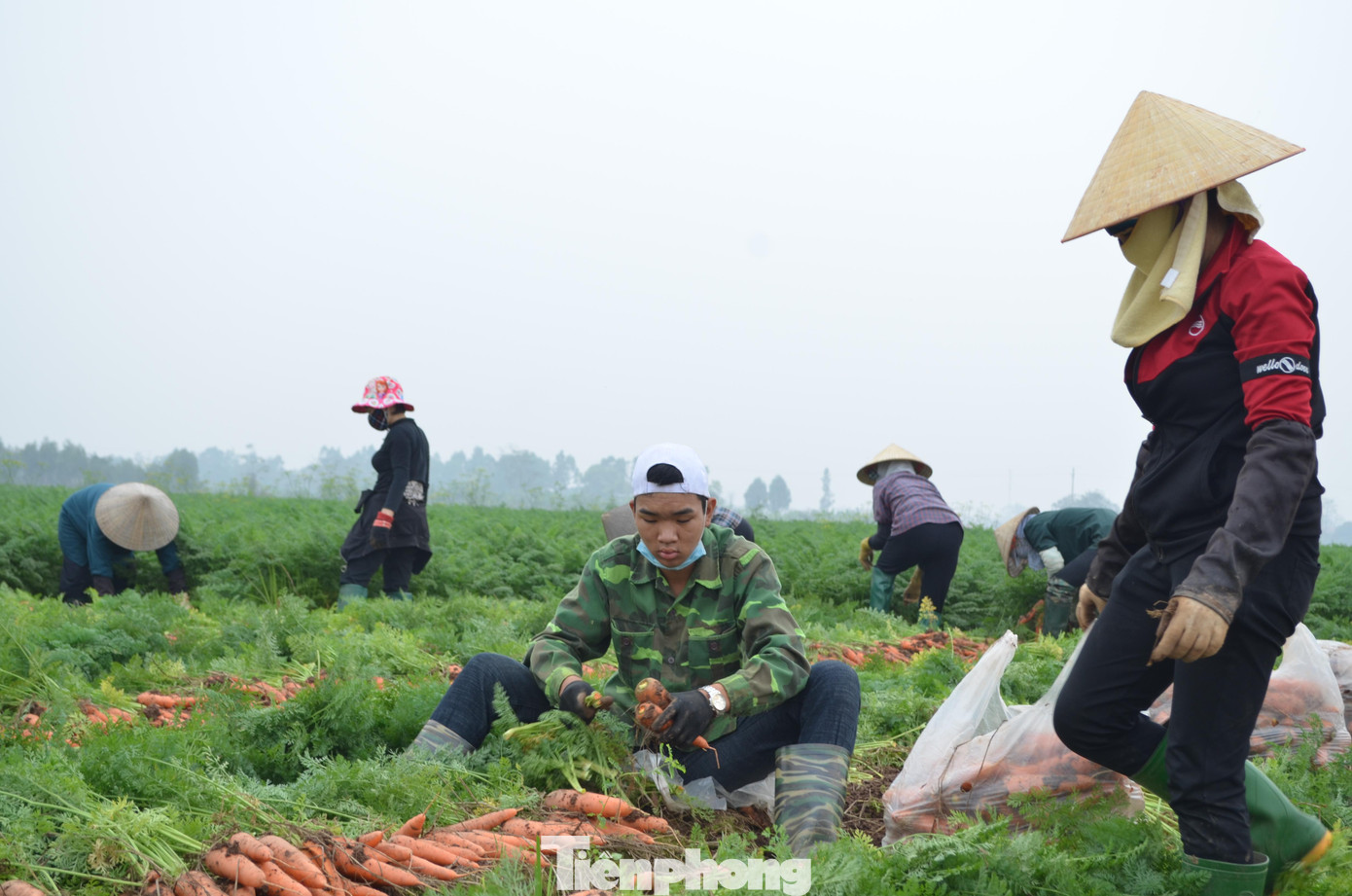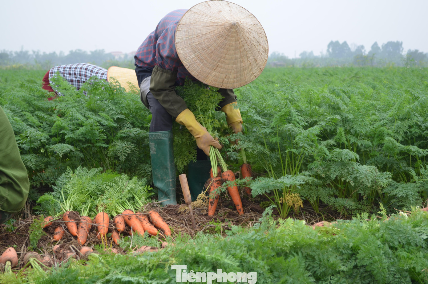 | Cà rốt được các thương lái – chủ yếu từ tỉnh Hải Dương, thu mua với giá dao động từ 10-15 triệu đồng/sào. |