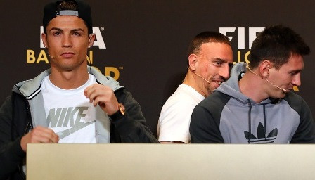 22h50: Cả ba ứng viên Ronaldo, Messi và Ribery vừa kết thúc buổi họp báo trước Gala. Mỗi người trong bọn họ thể hiện một tâm trạng khác nhau. Ronaldo tự tin, Messi có vẻ tự ti, trong khi Ribery vui vẻ với lần đầu tiên góp mặt.