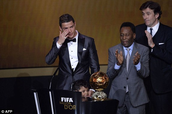 Ronaldo và đôi mắt ngấn lệ mừng vui khi nhận giải.