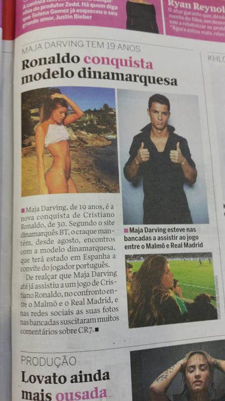 Tờ Correio Da Mahna (Bồ Đào Nha) đưa tin C.Ronaldo đang bí mật hẹn hò với người mẫu tuổi teen người Đan Mạch, Maja Darving.