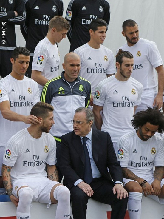 Perez mới đưa Zidane lên làm HLV của Real được hai tuần, thay Rafa Benitez bị sa thải trước đó. Cả đội, vì thế, phải chụp lại ảnh để đăng trên trang web và các ấn phẩm thương mại.