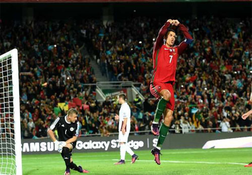 Ronaldo đã có một trận đấu với nhiều cảm xúc trái ngược khi tiếp Latvia. Tiền đạo này mở tỷ số từ một quả phạt đền, rồi sút hỏng một quả phạt đền khác, trước khi hoàn thành cú đúp bằng một pha tung người vô lê cắt kéo. Cùng với hai bàn khác của William Carvalho và Bruno Alves, Bồ Đào Nha giành được trận thắng thứ ba liên tiếp tại vòng loại World Cup.