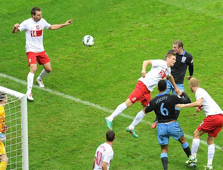 Từ tình huống đá phạt góc bênh cánh trái của Gerrard, bóng rơi đúng vị trí của Rooney, chẳng cần giậm nhảy tiền đạo anh đã dễ dàng đánh đầu tung lưới của đội chủ nhà, bóng có vẻ đã chạm vai một cầu thủ Ba Lan trước khi đi vào góc phải khung thành. Cũng phải nói thêm rằng, để tiền đạo của tuyển Anh có được tình huống ghi bàn dễ dàng này cũng phải nói đến sai lầm hàng loạt của đội chủ nhà khi rất nhiều người theo kèm nhưng đều đón hụt bóng.